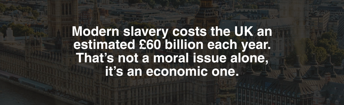 Let me start with the fundamentals. Modern slavery costs the UK an estimated £60 billion socio-economically each year – roughly 2% of GDP. That translates to an average cost of £92.8 million per English constituency, £67.8 million in Wales, £65 million in Scotland, and £62.3 million in Northern Ireland. This is not a marginal issue. It is a material economic problem that compounds year on year.